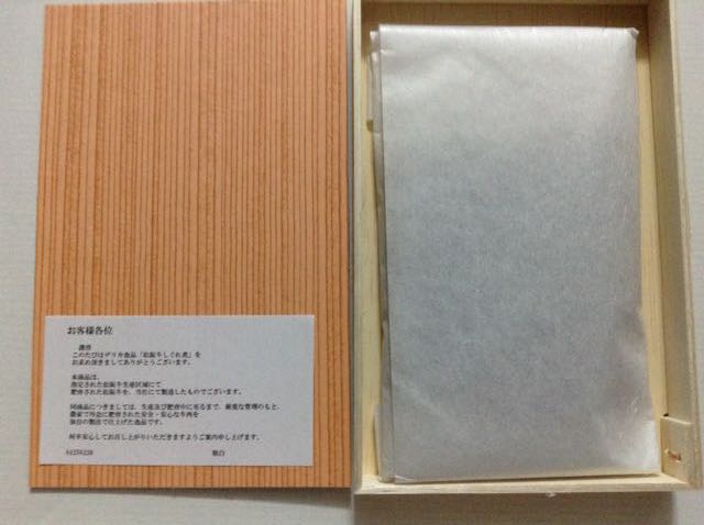 前回権利取得時には株主優待券を選択したので、この商品を貰うのは初めて。150gで約3千円の高級食品なので食べるのが楽しみ。賞味期限2017年6月29日。レターパックプラスって書類を送るのに使うものだと思っていたので食品が入って届いたのにちょっとビックリ。配達員のかたから手渡し。