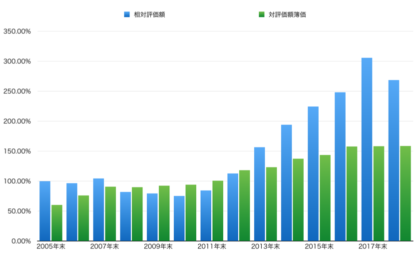 2017年は日経平均の+9.07%に対して、個人資産評価額12.65%増