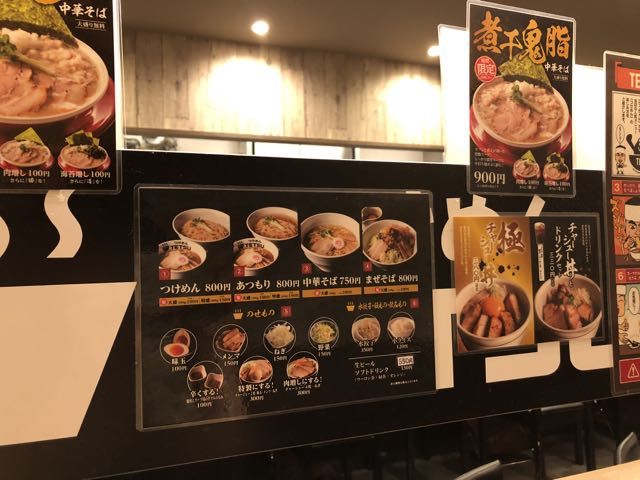 つけめんは800円、中華そばは750円。クリエイトレストランツ[3387]の株主優待券は500円単位なので500円券1枚と端数は現金で支払い。机上に置かれているアンケートに回答すると次回使える味玉トッピングまたは麺大盛りの無料券(100円相当)が貰える。