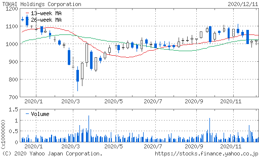 12/1にTOKAIホールディングスから株主優待が届いた。普通郵便、中間配当金計算書同封。