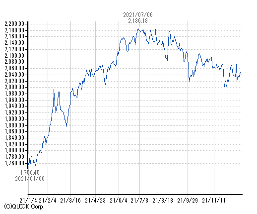 9月半ばに3万500円を超えたのを高値に、その後は2万7千円台にまで下落。以来一時盛り返したが、新型コロナウイルスの変異株の感染が広がり市況は伸び悩み。12月中は2万7千5百円から2万9千円の間をフラフラ。岸田内閣になってから増税など市場に厳しい話題ばかりで、経済を拡大させる政策が出てこない。再配分するのは大事だが、他国に比べて縮小している経済を拡大することをしないと未来はない。株価も上がるわけがない。