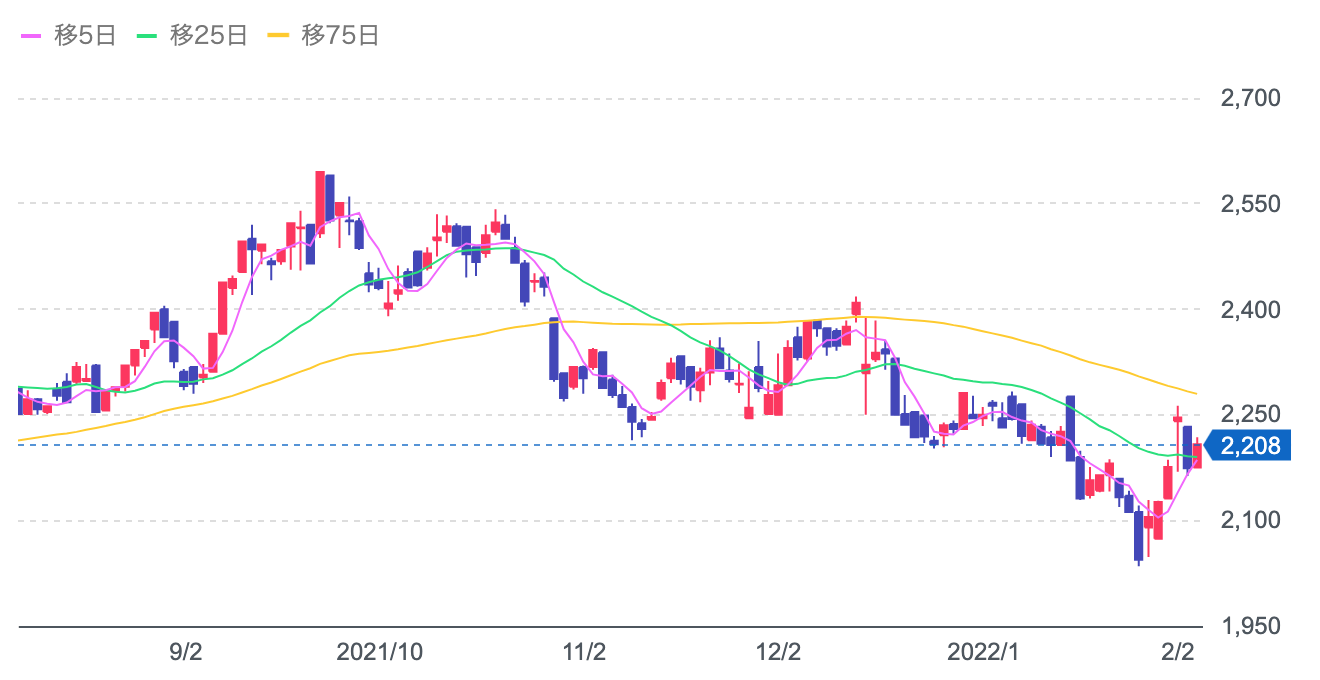 株価:2,208円(2/4)