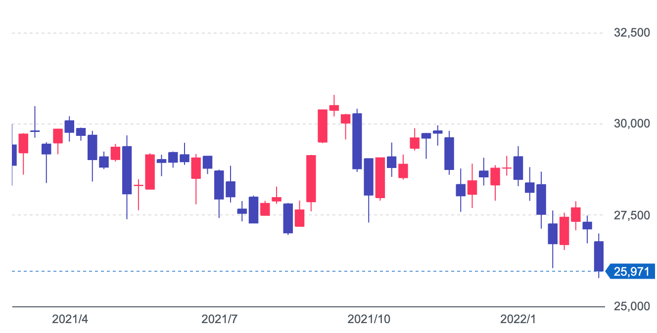 1月末の暴落後も株価はくすぶり続ける。主にウクライナ情勢の緊迫化。そしてここにきてロシア軍がウクライナへの軍事侵攻を開始して日経平均株価は2万6千円割れで年初来安値更新となった。短期間で終わればいいが、長期化するとエネルギー価格の上昇などでさらに景気悪化懸念が広がってくる。直近各企業の業績発表は概ね好調なので短期間で軍事衝突が収束すれば、業績相場となってくるだろうが、長期化すると株価はさらに下落するだろう。岸田政権は株価対策に消極的で、政府部門によるてこ入れは期待できない。相場環境は益々厳しくなりそうだ。