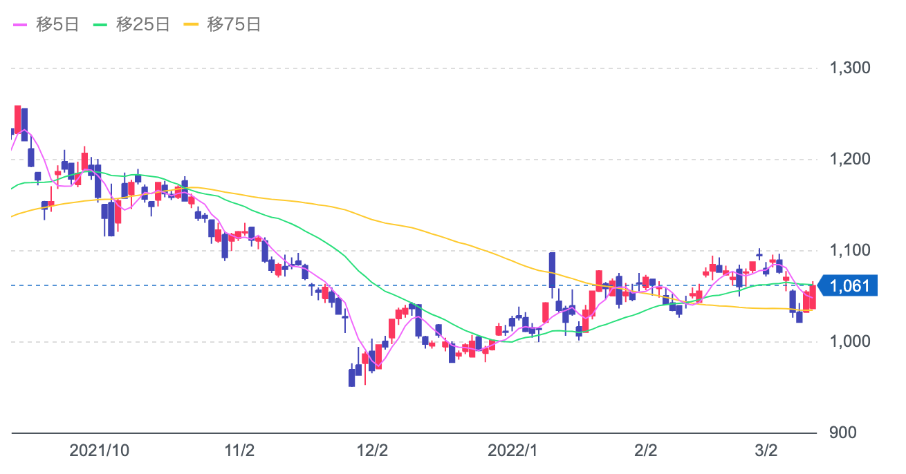 株価:1,061円(3/11)