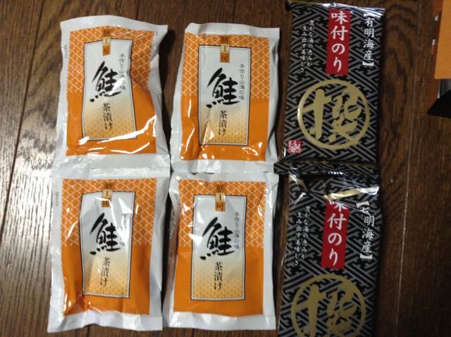 2/20 都築電気から選択した商品が届いた。1/9申し込みはがきを投函し、2/20ゆうパックで受け取り。選択したのは「お茶漬け・有明海産味付け海苔詰め合わせ」セット。