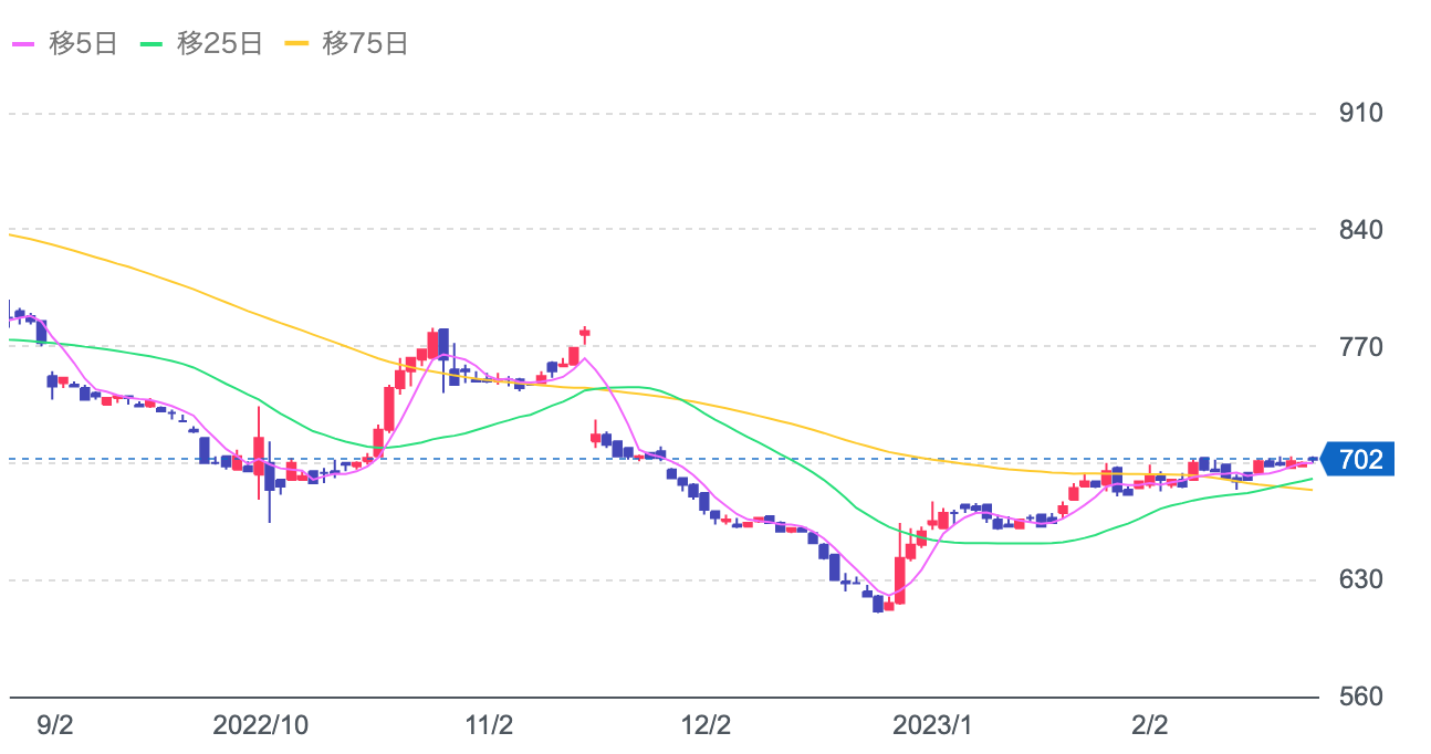 株価:702円(2/24)