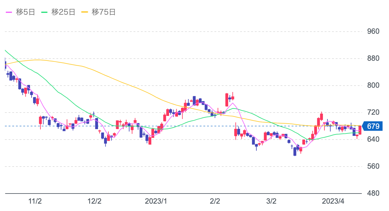 株価:679円(4/14)