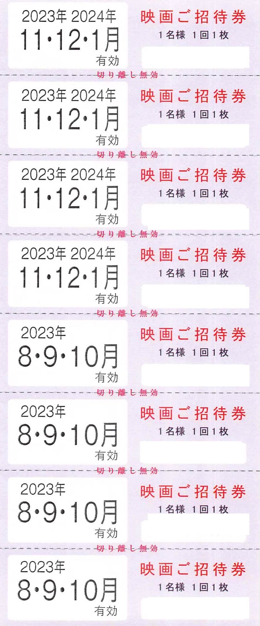 ※ご招待券綴は、以下の指定3か月有効のご招待券を半数ずつ綴った4枚綴および8枚綴で切り離し無効