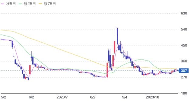 株価:307円(10/26)