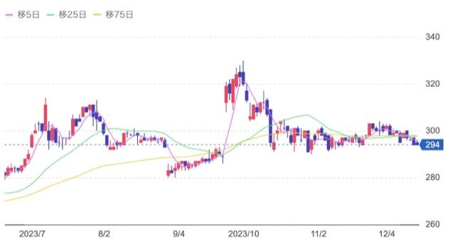 株価:294円(12/15)