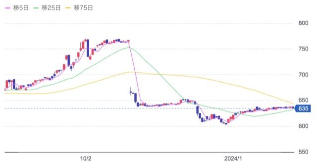 株価:635円(2/9)