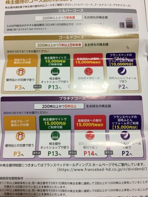 6/28にフランスベッドホールディングスから株主優待案内が届いた。普通郵便、株主総会決議通知同封。初取得。