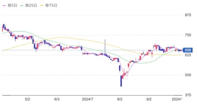 株価:656円(10/4)