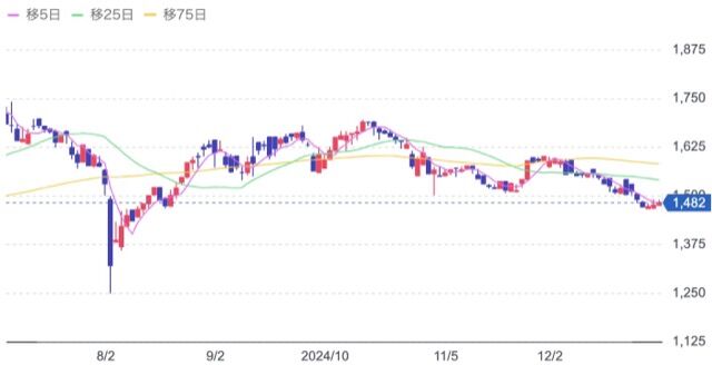 株価:1,482円(12/30)