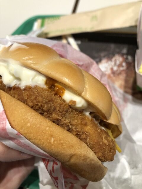 赤もピリ辛とはいえ、気になる程ではない。元々チキンバーガーは好きだし厚みもあるので満足。
