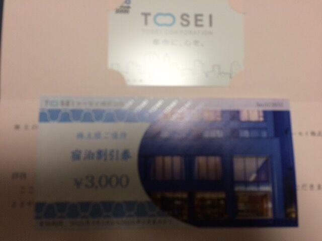 3/3にトーセイから株主優待が届いた。普通郵便、株主総会決議通知同封。