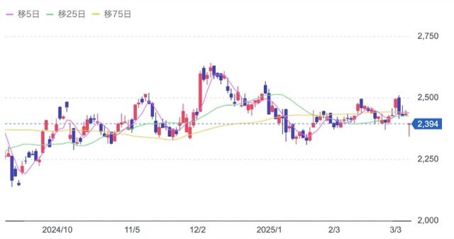 株価:2,394円(3/7)