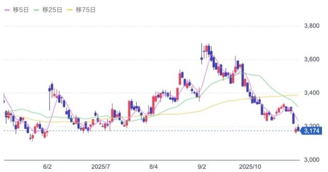 株価:3,174円(10/31)