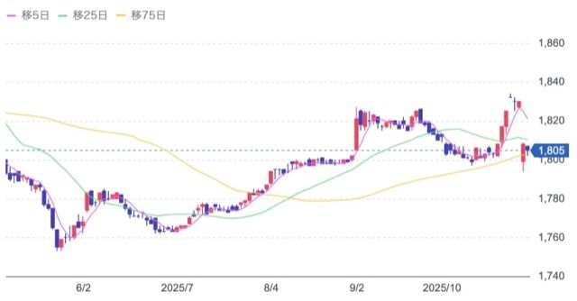 株価:1,805円(10/31)