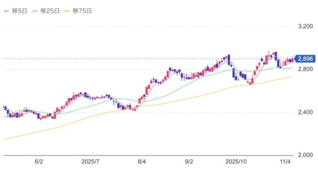株価:2,896円(11/7)