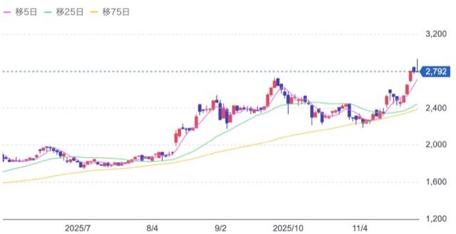 株価:2,792円(11/28)