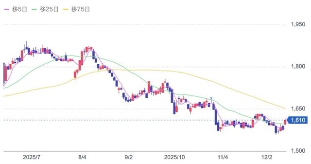 株価:1,610円(12/12)