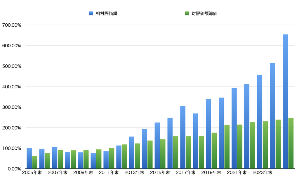 2024年は日経平均の+19.22%に対して、個人資産評価額+10.80%(負け)2025年は日経平均の+26.18%に対して、個人資産評価額+24.52%(負け)