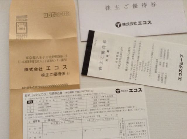2月優待のエコスから買い物割引券が届きました。株主総会決議同封。