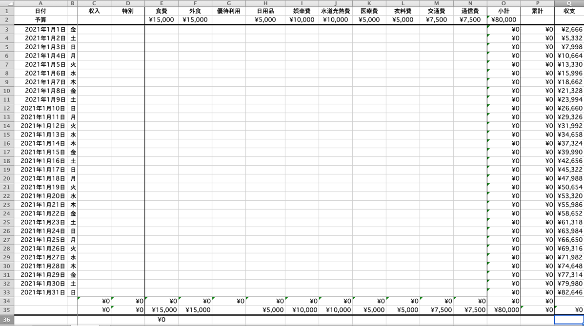 先日、エクセルで付けている家計簿の一部を紹介した。