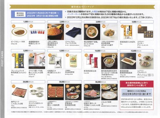 商品選択ハガキ等で選択する方式の株主優待については株主優待の案内が届いた時点の記事に、到着記事を追記する。そして、追記記事へのリンクをいくつかまとめて1つの記事にしている。